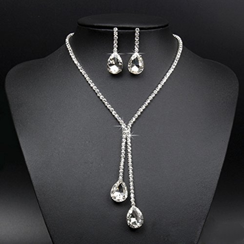 This necklace earrings jewelry set is made by silver plated,crystal and rhinestone,which will make the owner be more charming on the wedding,party or other occasion.